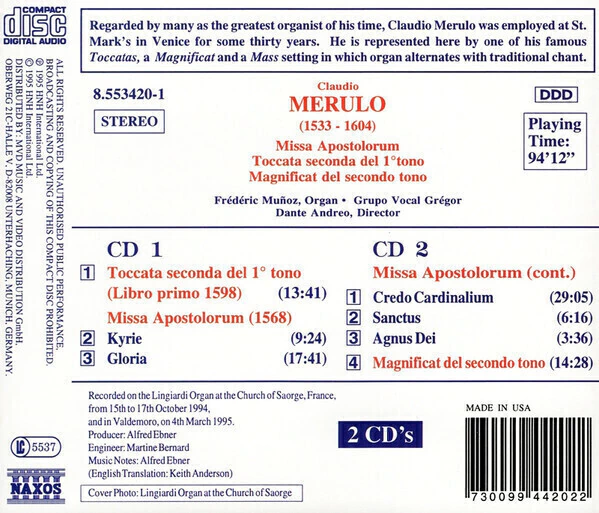 Merulo C Missa Apostolorum - Grupo Vocal Gregor/Andreo