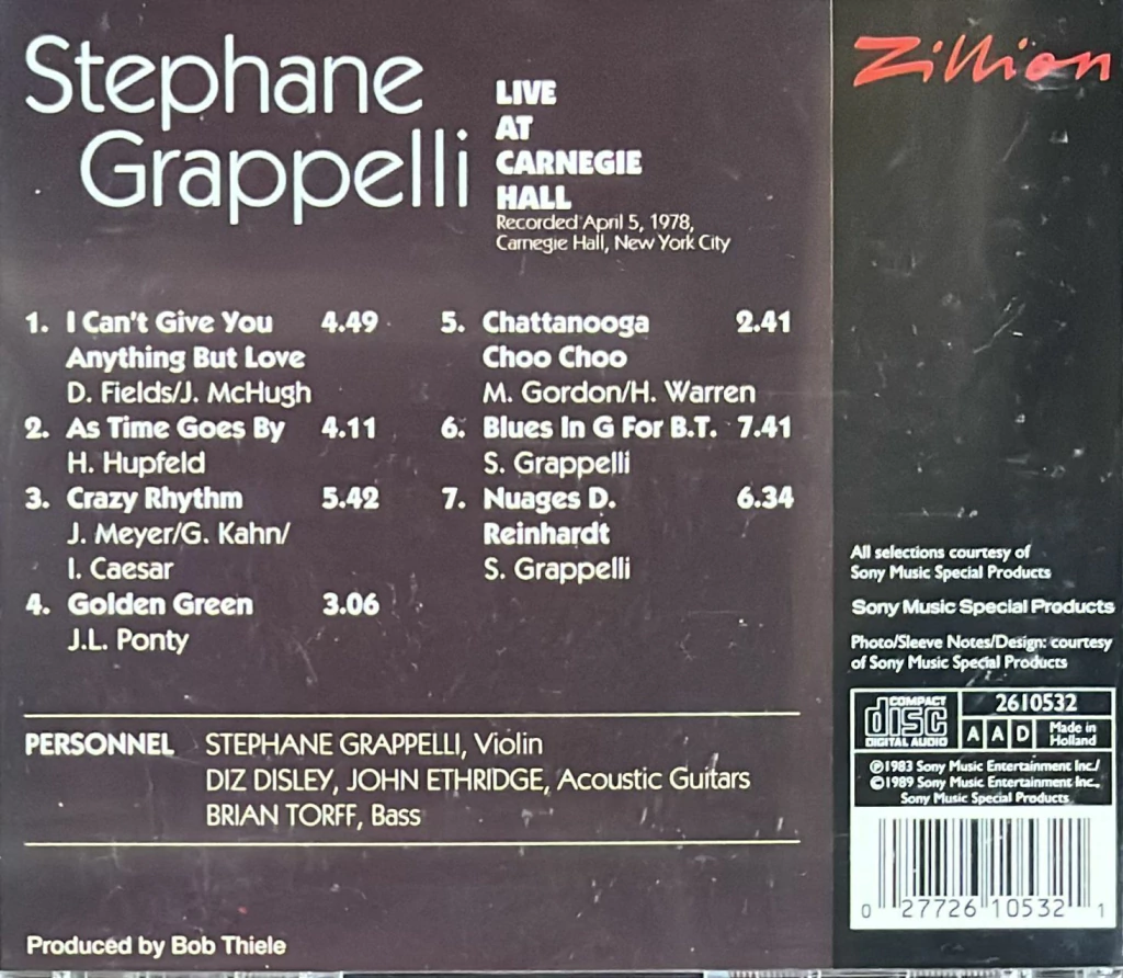 Jazz Grappelli (Stephane) Live At Carnegie Hall (1978) - S.Grappelli-D.Disley-J.Ethridge-B.Torff