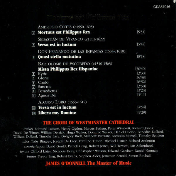 Musica Antigua Musica De Vida y Muerte Para Felipe Ii - Westminster Cath.Choir/O'Donnell