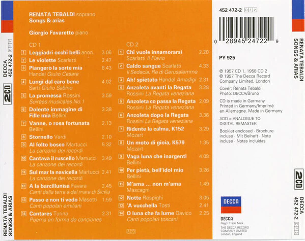 Solistas liricos Tebaldi (Renata) Songs & Arias - G.Favaretto(Piano)