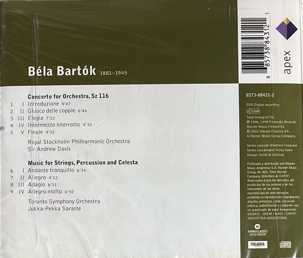 Bartok Musica Para Cuerdas Percusion y Celesta - Toronto S.O/Saraste