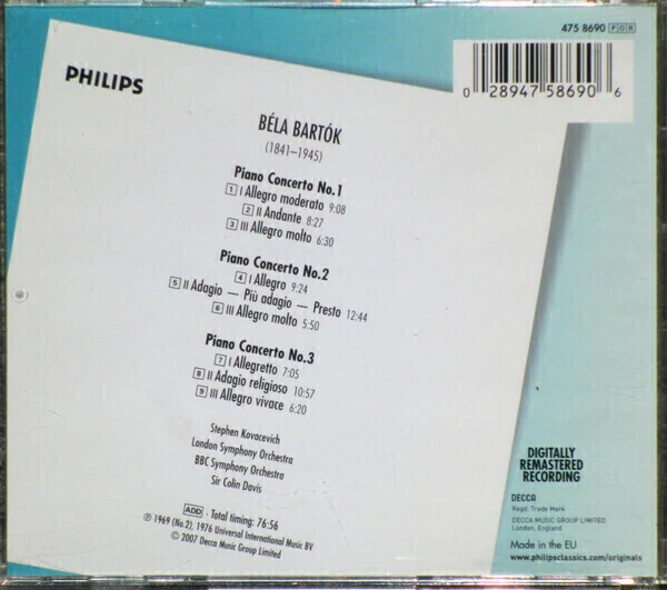 Bartok Concierto Piano (Completos) - S.Kovacevich-London S.O./C.Davis