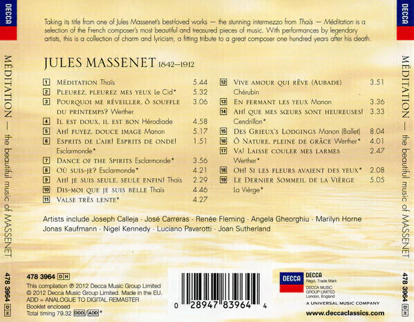 Musica Para Relajacion Massenet (Arias y Danzas) - Calleja-Carreras-Fleming-Gheorghiu-Pavarotti-Sutherland