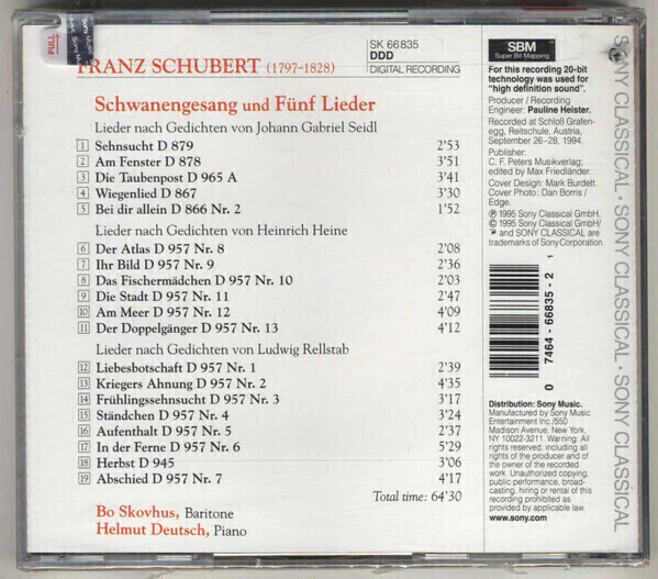 Solistas liricos Skovhus (Boje) Schubert: Five Last Songs - B.Skovhus-H.Deutsch