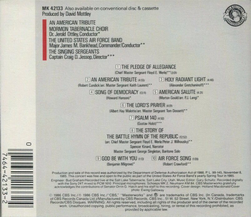 Solistas liricos Coros An American Tribute Mormon Tabernacle Choir - Mormon Tabernacle Choir-Singing Sergeants/Ottley
