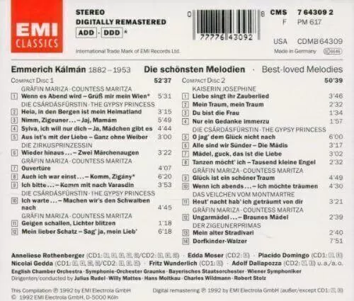 Solistas liricos Gedda (Nicolai) Kalman/Arias & Canciones 'Die Schonsten Melodien' 'Best-Loved Melodies – A.Rothenberger-N.Gedda-F.Wunderlich-A.Dallapozza/Mattes/Stolz/Rudel