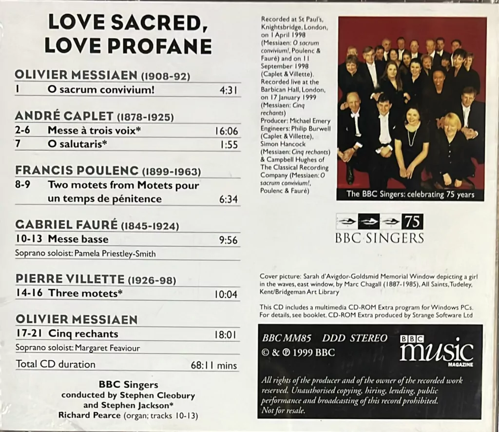 Solistas liricos Coros Love Sacred, Love Profane Messiaen-Caplet-Poulenc Faure-Villette - Pearce-Bbc Singers/Cleobury/Jackson
