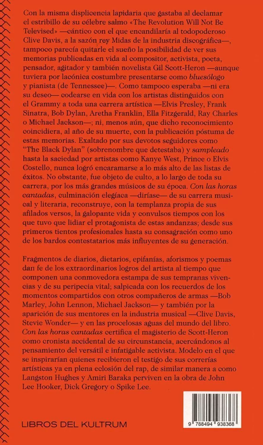 Memorias del cantautor, compositor, escritor y maestro del spoken word -y precursor del rap- Gil Scott-Heron. Reunidas a partir de fragmentos de sus diarios y dietarios, repletas de crónicas, epifanías, aforismos y poemas que dan fe de los extraordinarios logros del artista.