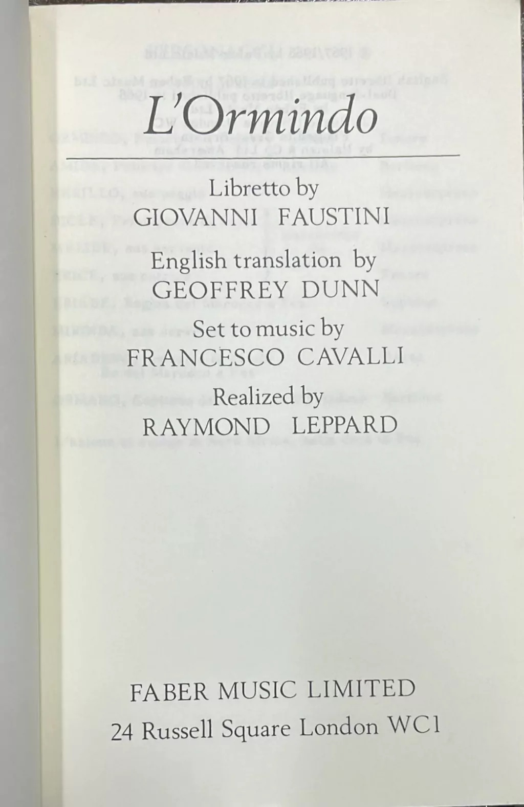 " L'Ormindo " Libreto de la Ópera de G. Faustini