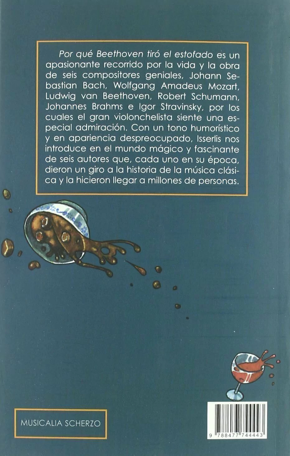 Por qué Beethoven tiró el estofado es un apasionante recorrido por la vida y la obra de seis compositores geniales, Johann Sebastian Bach, Wolfgang Amadeus Mozart, Ludwig van Beethoven, Robert Schumann, Johannes Brahms e Igor Stravinsky, por los cuales el gran violonchelista siente una especial admiración. Con un tono humorístico y en apariencia despreocupado, Isserlis nos introduce en el mundo mágico y fascinante de seis autores que, cada uno en su época, dieron un giro a la historia de la música clásica y la hicieron llegar a millones de personas.